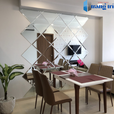 Là sự kết hợp nhiều mảnh gương mài cạnh tỉ mỉ với nhau theo hình dáng nhất định, tạo nên tác phẩm gương nghệ thuật độc đáo. Thích hợp trang trí phòng khách, tiền sảnh, hay shop thời trang.